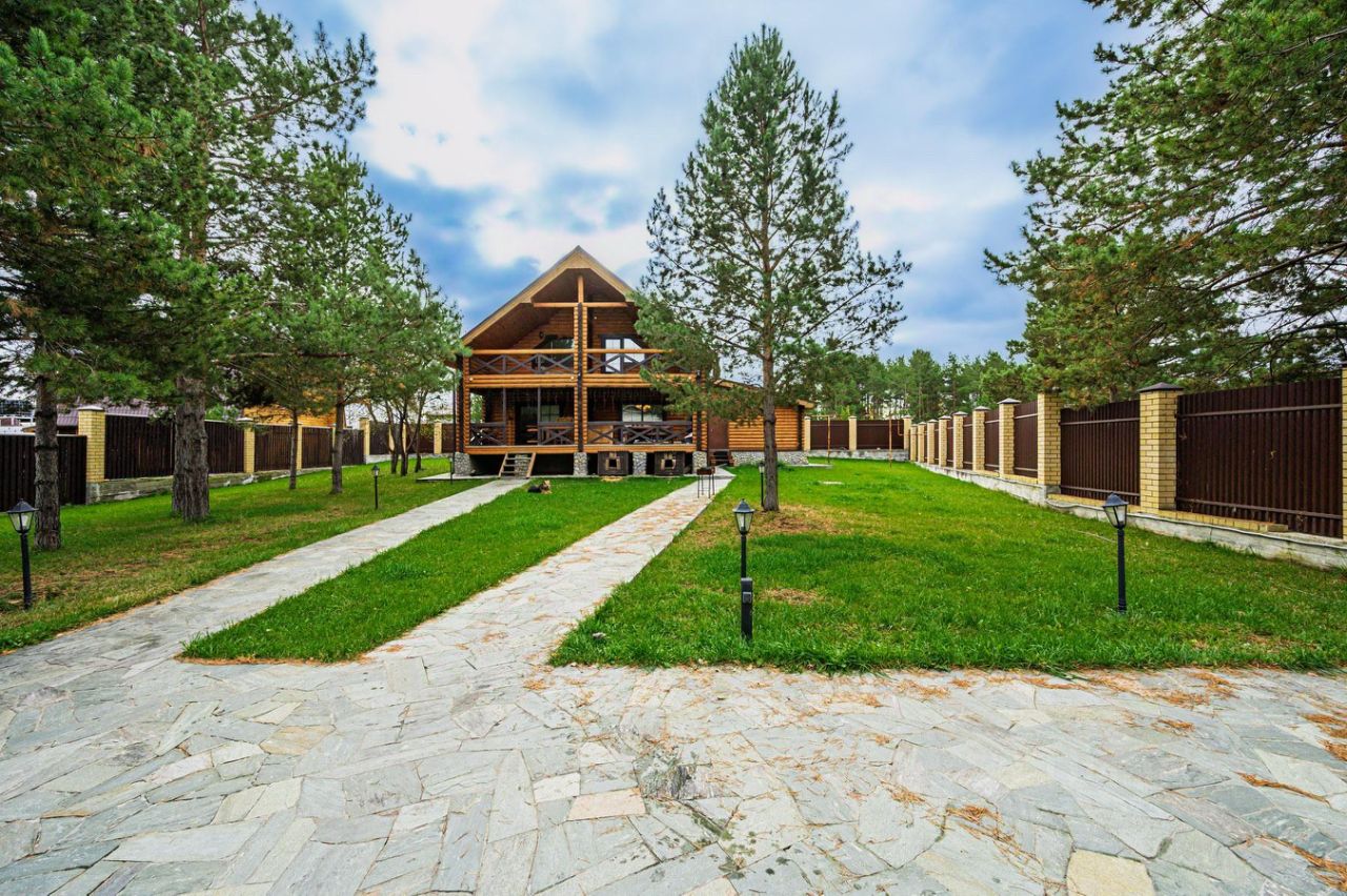 Перед домом ухоженный огороженный участок с молодыми соснами. Дорожки и площадка при въезде выполнены из приходного камня.