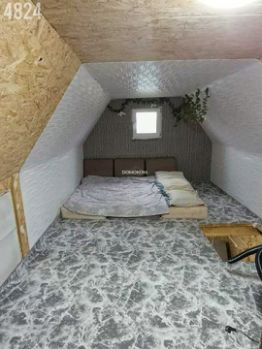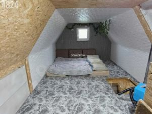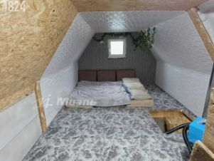 - Второй этаж (мансардный) предназначен для проживания, утеплен и подготовлен к индивидуальному дизайну. Есть евро-куб для хранения воды, стены обшиты ДСП, на полу новое ковровое покрытие.