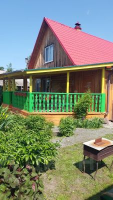 Дом построен из бруса , имеет общую площадь 53 кв. , земельный участок правильной формы. Отопление : русская печка , вода из колодца ( есть летний водопровод) .Гараж , жаркая банька , две теплицы , множество насаждений все это сделает ваше проживание комфортным и уютным . Прямо напротив дома протекает красивая речка . Подъезд к дому асфальт . Торг .