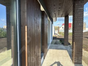 • Крытая терраса 15 м² с кирпичными столбами шоколадного цвета