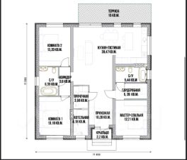 • Фундамент — монолитная плита 300 мм, утеплённая отмостка по периметру 120 см