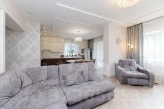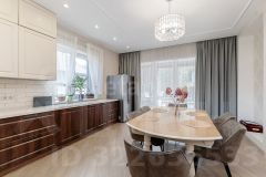 В доме: 3 спальни, кабинет и просторная кухня-гостиная. При продаже остаётся вся мебель и техника. Ремонт из качественных материалов - на стенах стеклохолст и обои, потолок гипсокартон на профилях со стеклохолстом, на полу кварц винил. Сан узлы отделаны элитным керамогранитом. Отдельная вентиляция на 1 и 2 этажах. Тёплый пол на 1м этаже. Есть чердак.