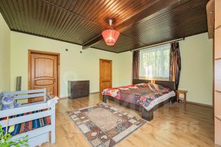 Фактическая площадь дома 500 кв.м. В доме четыре спальни, один гостевой сан. узел, один индивидуальный сан. узел для спальни, обеденный зал с камином, кухня-гостинная, зимний сад, балкон, котельная, гараж в доме и отдельно стоящий гараж, помещение для хранения овощей и консервации. Третий этаж мансардный, можно использовать как игровую для детей, либо бильярдную.