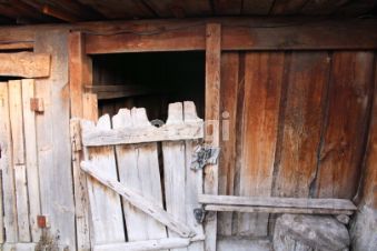 В самом доме две просторные комнаты, а деревянные окна добавляют ему уют и натуральность.