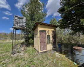 Отдельно стоящий туалет с унитазом со смывным устройством (как дома)