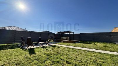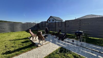 Во дворе обустроена зона барбекю, костровая с удобными креслами и обеденная зона с навесом. Посеян газон, а также отсыпана парковка. Установлен деревяный забор и проведено освещение по периметру участка, что придаёт особый уют.