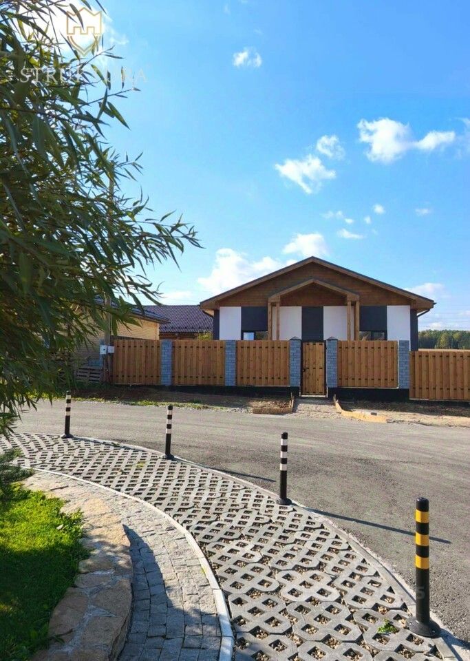 Фасад дома выполнен в элегантном стиле: белая декоративная штукатурка гармонично сочетается с изящными деревянными элементами. Крыша покрыта современной мягкой черепицей, гарантирующей надёжную защиту от любых погодных условий.