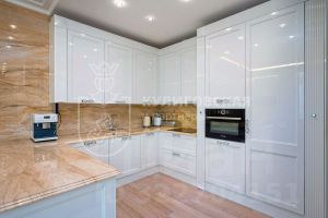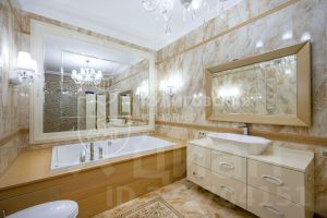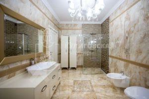 Дизайнерский ремонт в светлых тонах, лепнина, мягкое освещение и итальянская мебель создают атмосферу лёгкой классики.