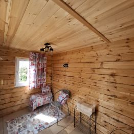 В доме две комнаты + санузел ( душевая кабина)+ терасса с мягкими окнами.