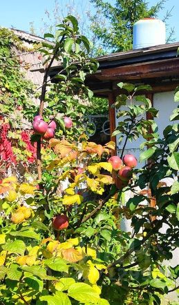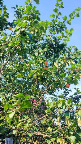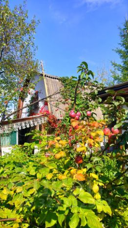 Имеются шикарные многолетние плодоносящие деревья и кустарники: яблони, груши, облепиха, малина, вишня, слива.