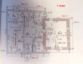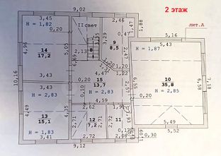 В доме на 1-ом этаже: холл, кухня-гостиная, на 2-ом этаже: 4 комнаты, большой зал, 2 санузла.
