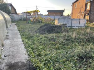 Участок огорожен забором из профлиста, здесь много плодовых деревьев и ягодных кустов, 2 теплицы, оборудована зона отдыха с беседкой, мангалом и бассейном.