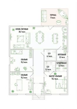 - 3 спальни (15; 15), в том числе одна — мастерспальня (15)