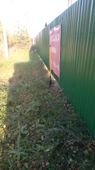 Забор- профлист с 3-х сторон, сетка с 1-ой стороны. Ворота- ширина 4 метра, калитка-ширина 1 м. Высота 2 метра.