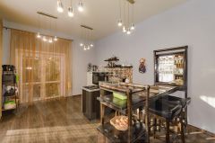 Перейдя по зимнему саду вы попадаете во вторую часть дома. Эта часть двухэтажная. На первом этаже расположена прихожая, котельная, сан-узел, а дальше вы попадаете в кухню-столовую и зону гостиной. Так же на первом этаже располагается баня (в ней есть как моечное отделение, так и парилка).