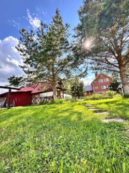 На участке: гостевой домик, русская баня, беседки малая и большая, мангальная зона, теплица на фундаменте, 2 хозяйственных ангара, гараж, навес на 2 машины.
