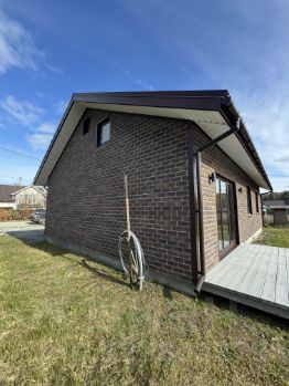 Одноэтажный каркасный дом площадью 92 кв.м.с террасой на участке 10 соток идеально подходит для постоянного или сезонного проживания.