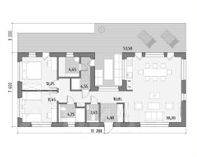 В доме будет располагаться две спальни, зал-кухня, сауна, два сан узла, беседка все под одной крышей.