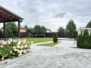 Участок полностью благоустроен. Сделана отсыпка участка, завезен плодородный грунт. Выполнена дренажная система по периметру участка с бетонными желобами. Шикарный газон с подсветкой. Зоны отдыха. Въездная группа плитка бехатон.