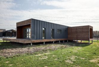 Фасад дома - Вентилируемый металлический (фальцевый) фасад и частично деревянный фасад (планкен хвойный )