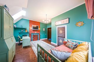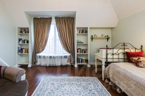 На втором этаже - 2 детские, общий санузел, родительская спальня с собственным санузлом и уютная мастерская-кабинет с шикарным видом на сад. В каждой спальне есть своя гардеробная комната. Установлена система кондиционирования воздуха.