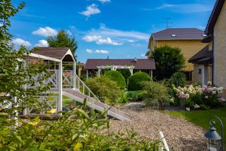 На участке: розарий - более 25 роз, хвойные растения - более 10 видов, гортензии.