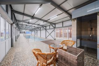 l Бассейн: Отдельностоящий , площадь "зеркала" воды 15х2,5 м, глубина до 1.5 м. (50 м.куб. воды) Помещение имеет собственную систему отопления, водоснабжения и канализации. Душ, санузел. Предусмотрен для круглогодичного использования. Примыкает к бане.