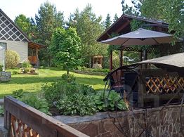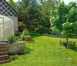 Участок ровный, зеленый, ухоженный сад, зона отдыха и игр. Крытая веранда с обеденной зоной, летняя кухня и многое другое. Летом здесь пахнет травой и яблоками, зимой — уютно смотреть на снег из окна с чашкой чая в руках. Вокруг лес и тишина. На участке много деревьев, каштаны и малина.