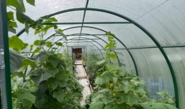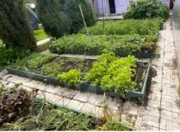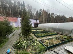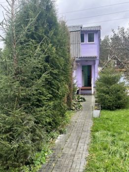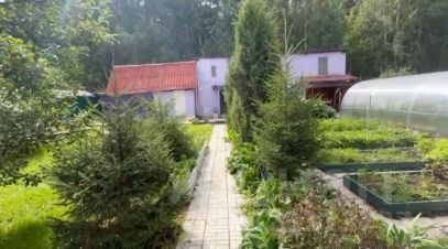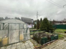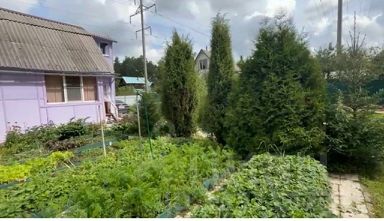 Ухоженный участок с грядками для овощей и цветов, тропинки выложены плиткой, вдоль тропинок высажены красивые хвойные деревья, а в зоне отдыха оборудована лужайка с газоном. Вдоль забора растут кусты крыжовника и смородины, яблоня. Установлена новая 2-х секционная 10м теплица.