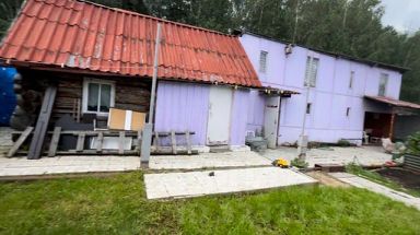 В доме на 1 этаже расположены кухня и 2 две комнаты, второй этаж мансардный с 1 комнатой. На участке оборудованы две парковки для машин, сделан дощатый настил под летний бассейн. В конце участка двухэтажный сарай: на первом этаже оборудованы летняя комната отдыха и зона для шашлыка, помещение под дровяник, скважины для воды и бойлера. На втором этаже помещение для хранения вещей. Из сарая есть выход в лес. Рядом с сараем стоит бревенчатая банька.