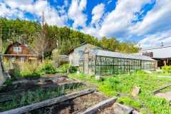 2 стеклянные теплицы 5 и 7 метров, бассейн, мангальная зона, качель.