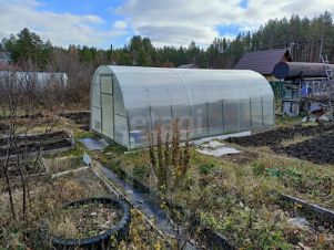 На участке имеются 2 теплицы: одна стеклянная, вторая из поликарбоната, сарай, скважина глубиной более 50 метров, а также колодец.