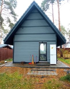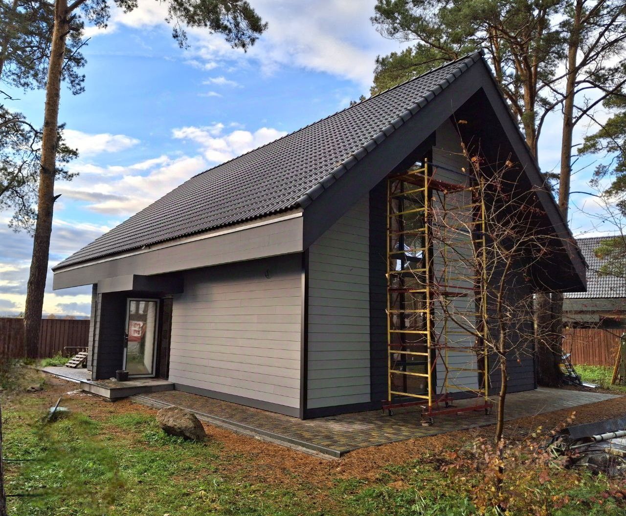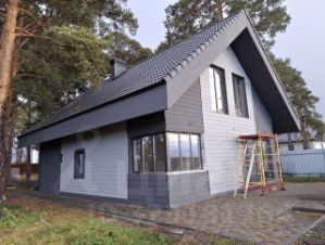 Отделка - вибросайдинг в графитово-серых оттенках.