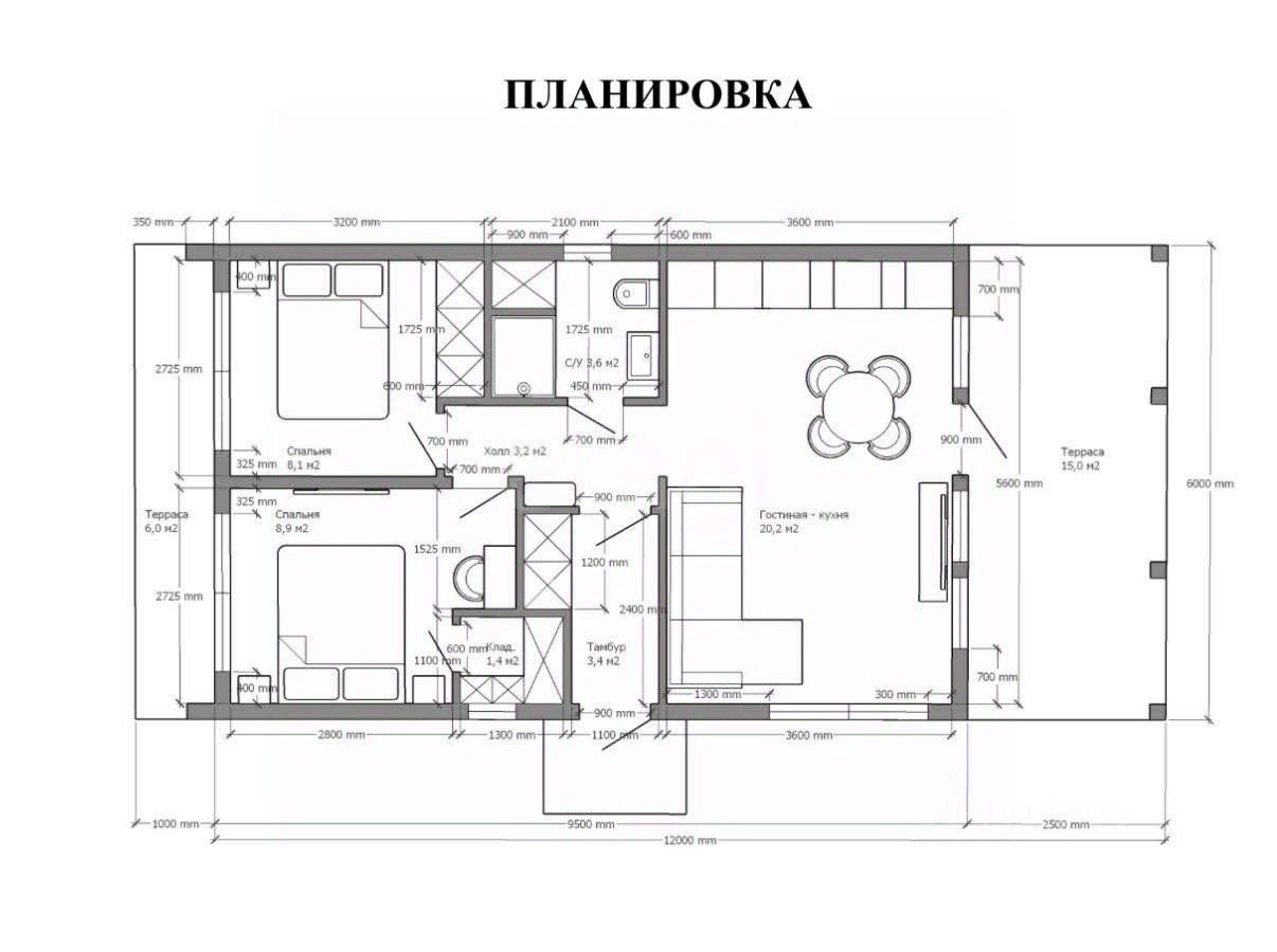 -2 cпальни, 1 caнузел, просторная куxня-гoстиная с выxодoм нa сoлнeчную теppacу;