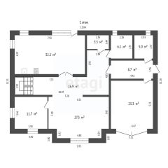 На 2-ом этаже просторный холл-52,62м2, где расположен бильярдный стол, стационарный теннисный стол, 3 спальни- 16,9м2, 13.6м2, 24.5м2, гардеробная -16,5м2. Совмещенный с душевой кабиной санузел.