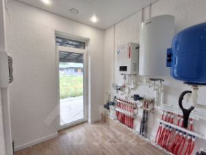 Отопление многоконтурная система водяного пола и радиаторы. Также установлен электрокотел с функцией Wi-Fi. Для горячей воды используется электрический водонагреватель объёмом 100 литров.