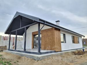 Дом в коттеджном посёлке отличается красивой архитектурой и удобной планировкой.