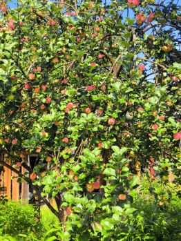 На территории есть дровник, плодовые деревья ( вишня, смородина, красная смородина, крыжовник), три плодоносных яблони.