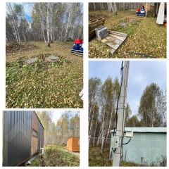 На участке около 20 берез и сосны, растут грибы и земляника. Выделена зона под костровище, дровяник, детский игровой домик.