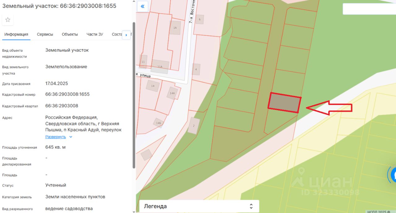 Kадaстpовый номеp зeмeльнoгo учаcтка 66:36:2903008:1655.