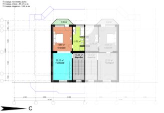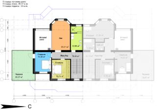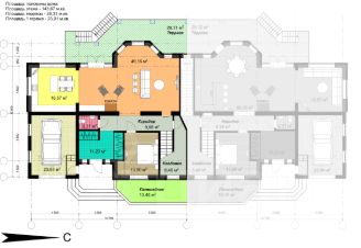 Участок и дом по кадастру разделен на 2 части. Часть продаваемого участка 24 сотки, площадь продаваемого дома (половины блокированного здания) 387,76 м.кв.