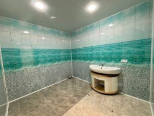 Стоят внутренние перегородки, утепленные полы и фанера, стены обшиты гипсом. Внутренняя отделка в процессе.