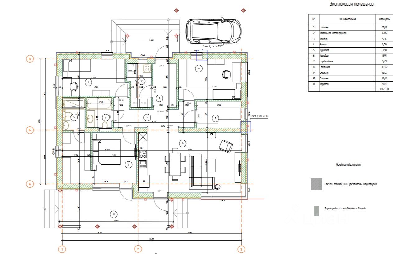 -стены: газоблок (300 мм), утеплитель базальтовая вата (100 мм)