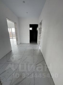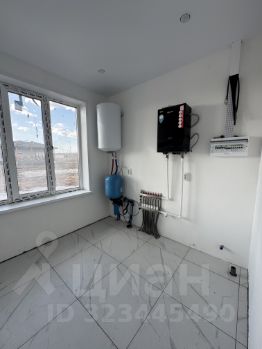 на полу - керамогранит и ламинат, стены подготовлены под обои, межкомнатные двери, натяжные потолки с точечными светильниками, в санузле кафель.