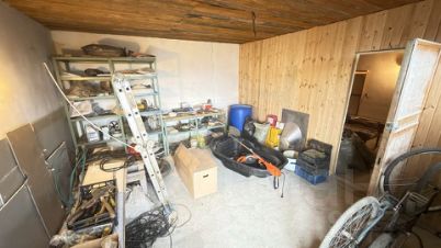 На территории участка отдельно стоящее здание из шлакоблока. Мастерская с гаражом для техники.
