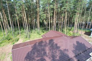 Дом поставлен таким образом, что бы по максимуму сохранить окружающий лес и буквально утопал в растительности.