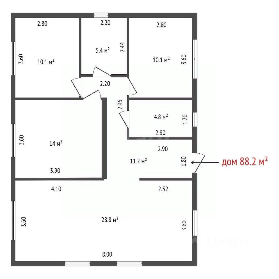 ОДНО этажный дом постройки 2024 года, отделка "под ключ", площадь 88,1 кв.м.,3 комнаты 10.1,10.1, 14 кв.м.,кухня гостиная 28,8 кв.м, санузел, котельная.
