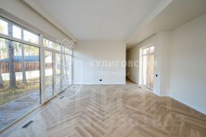 — Высокие потолки и панорамные окна наполняют комнаты светом и воздухом, открывая вид на зелёный участок.