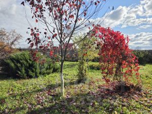 На участке высажено большое количество декоративных растений: Гортензии Фрайзмельба, Климатис сиреневый и бордовый, 5 кустов сирени, ирга, 5 кустов плодоносящей жимолости, 2 вида декоративной жимолости Каприфоль, 1 куст татарской декоративной жимолости, японский многолетний кустраник Спирея, яблони сорта Малиновка и Роялти, черемуха краснолистная, клен Геннала, можжевельник казацкий, туя, 4 куста барбариса, многолетние флоксы, виноград Девичий (декоративная лиана), дерен белый, ива извилистая, многолетний василек, многолетняя роза, садовый жасмин 2 куста, лилейник многолетний.