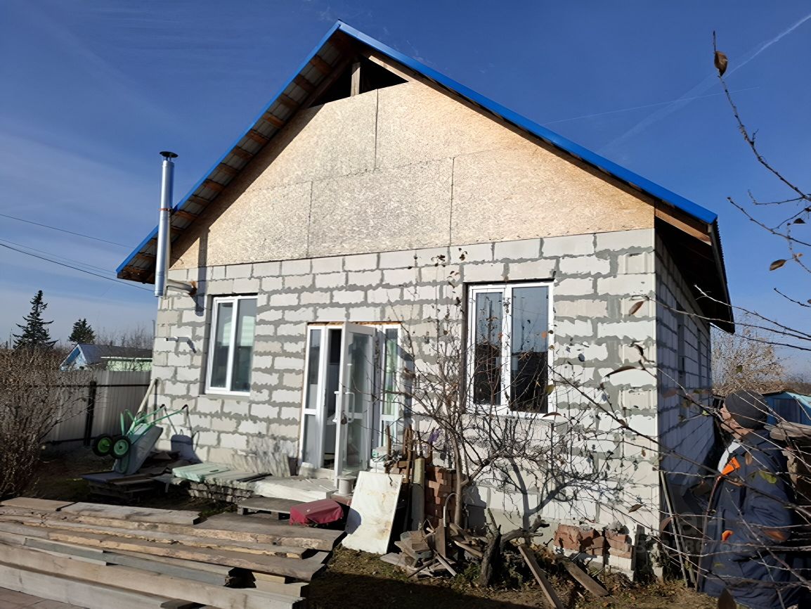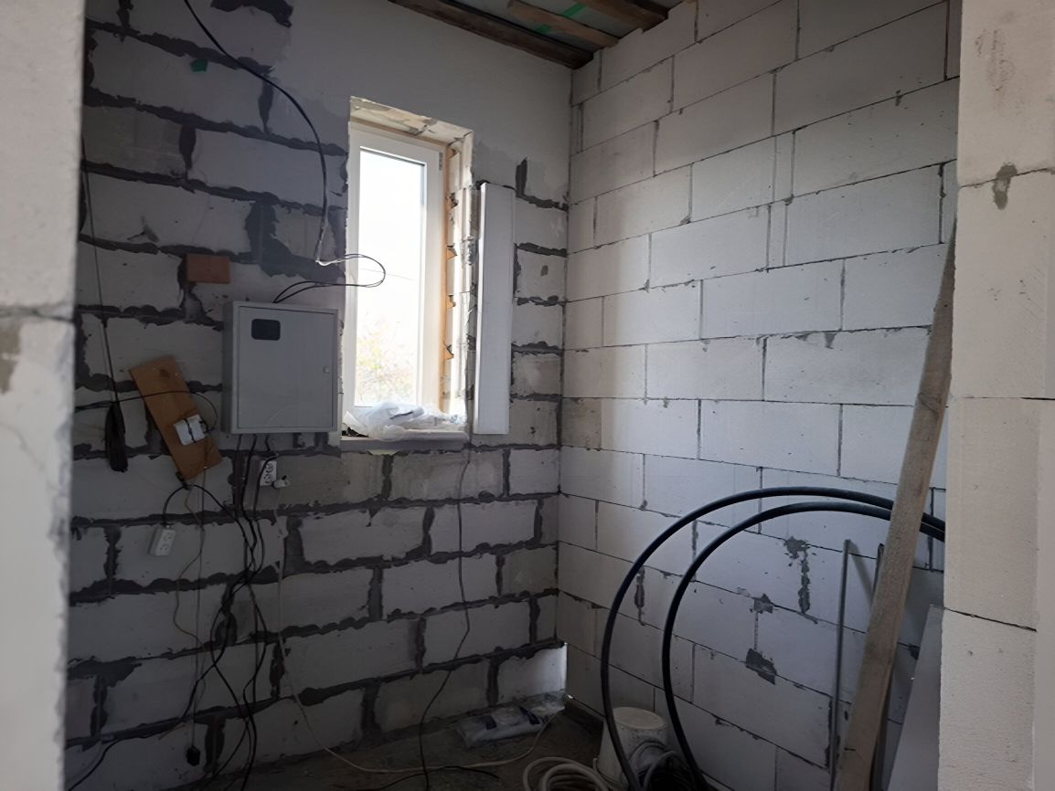 Новый дом с газовым отоплением(включен),вода заведена в дом,канализация.